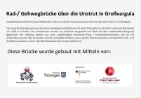 Nach nächtlicher Anreise um zwei Uhr schwebte am frühen Freitagmorgen des 24. März die neue Brücke, wie geplant, am Kran hängend über den Sportplatz von Großvargula an ihren vorbestimmten Ort. Einige Einwohner hatten sich extra eingefunden, um diesem historischen Moment beizuwohnen und bildlich festzuhalten. Alles passte milimetergenau auf die vorbereiteten Widerlager, so dass kurz nach neun Uhr der neue „Brunnsteg“ seinen Platz gefunden hatte.